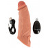La guaina RealSleeve con vibrazione di Realistixxx porta il pene in forma rapida e semplice, per momenti di piacere appaganti. Inoltre, le intense vibrazioni (del glande) forniscono un'eccitante stimolazione aggiuntiva. Ben 10 diverse modalità di vibrazione offrono un'ampia varietà e possono essere comodamente controllate con il telecomando o direttamente sul toy, premendo un pulsante. Grazie alla punta vibrante imbottita e morbida, il pene si allunga di ben 6,5 cm e lo spessore del materiale ne aumenta sensibilmente la circonferenza. Per un divertimento sessuale appagante e realistico che, grazie alle vibrazioni, va davvero in profondità per entrambi! Realizzata in morbidissimo silicone liquido con venature sottili e un glande modellato in modo dettagliato, la guaina del pene ha un aspetto molto realistico ed è così realistica e morbida al tatto. La guaina in silicone elastico si infila semplicemente sul pene. La guaina, morbida come la seta, si adatta perfettamente al pene grazie alla sua elasticità. L'aderenza piacevole può sostenere in modo ottimale l'erezione. L'anello elastico per testicoli garantisce una tenuta sicura senza scivolare