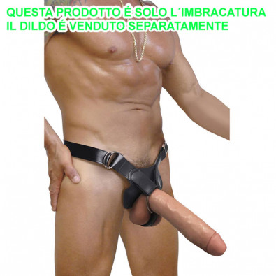 Progettata per adattarsi a dildo extra-large o per adattarsi all'anatomia maschile, questa imbracatura ha un grande anello in metallo per dildo fino a 7 cm di diametro, anelli di diametro diverso possono essere acquistati